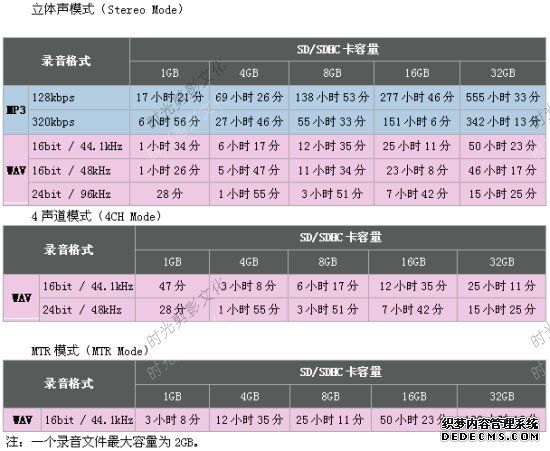 各种模式最大录音时间